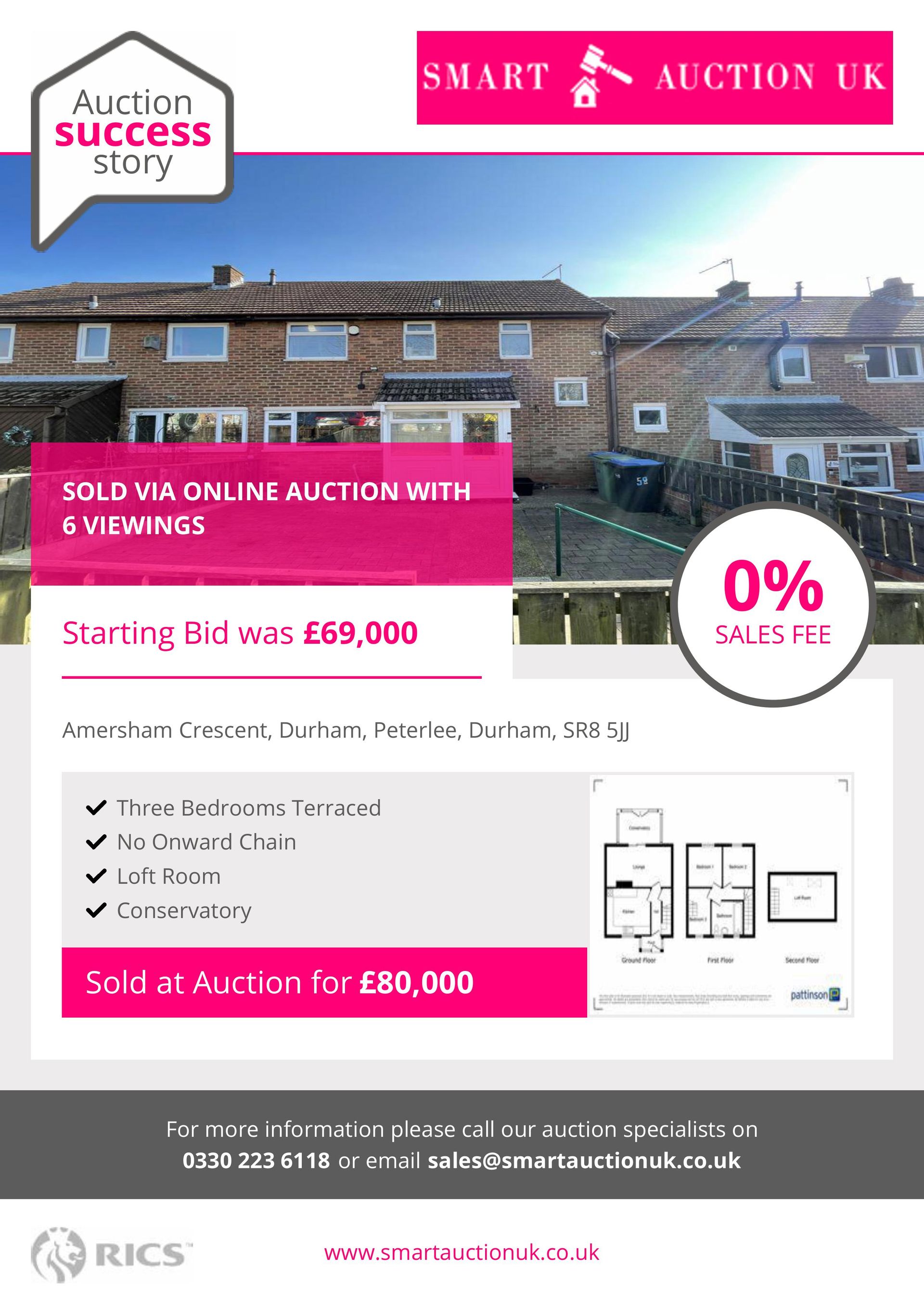 I needed a quick and secure sale for my property, but also needed as much as i could get. I found Smart Auction UK online and was really pleased to get just over what i needed for my property. Communication and service was 10/10 and would highly recommend using these guys in future if needed..! Thank you from a happy customer!
