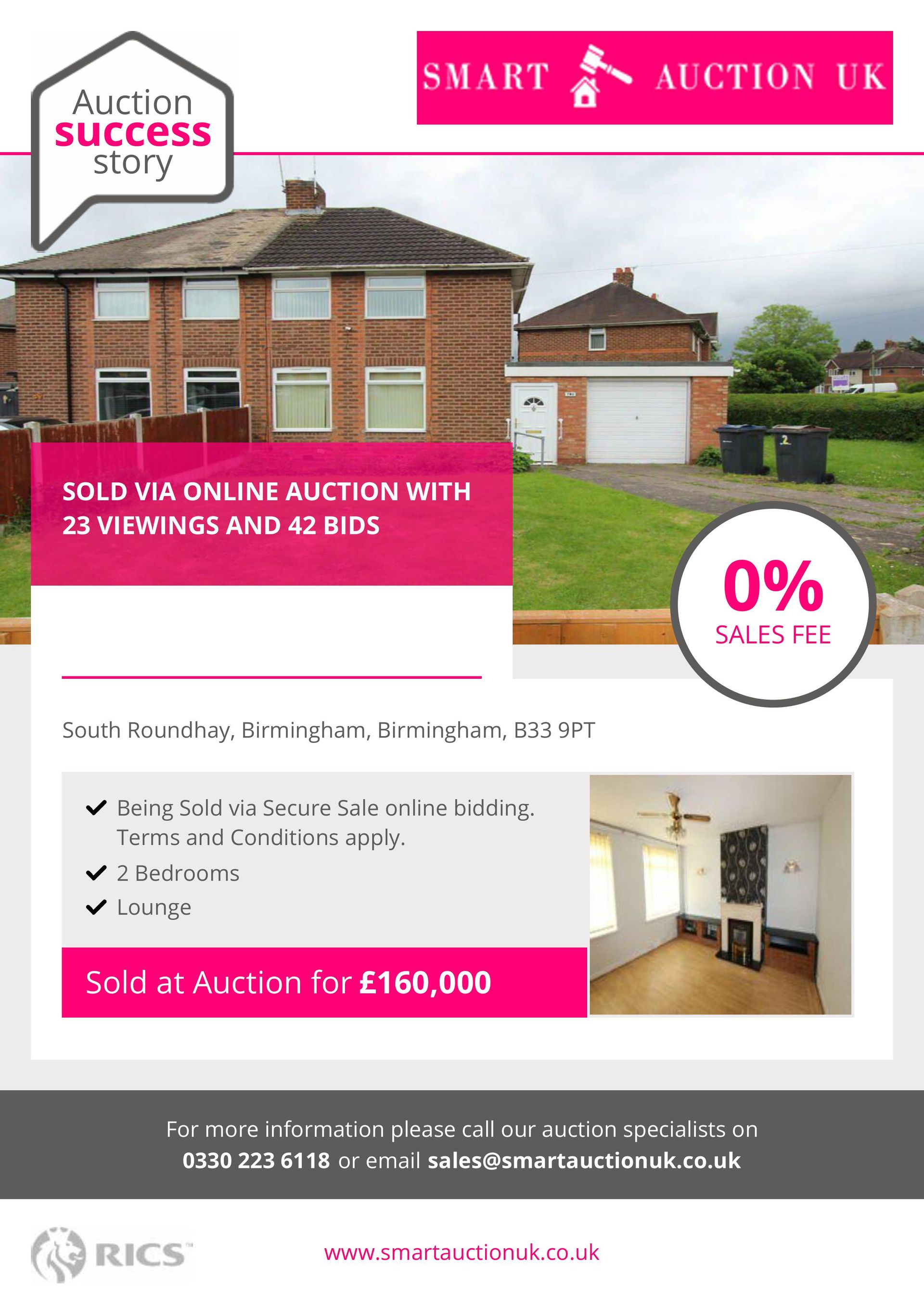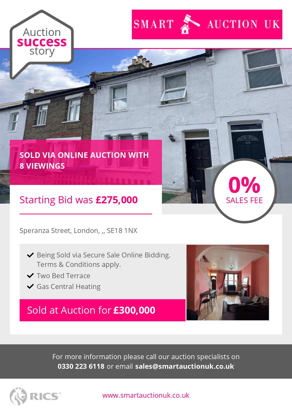 I needed a quick and secure sale for my property, but also needed as much as i could get. I found Smart Auction UK online and was really pleased to get just over what i needed for my property. Communication and service was 10/10 and would highly recommend using these guys in future if needed..! Thank you from a happy customer!
